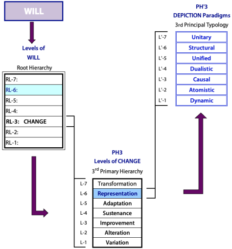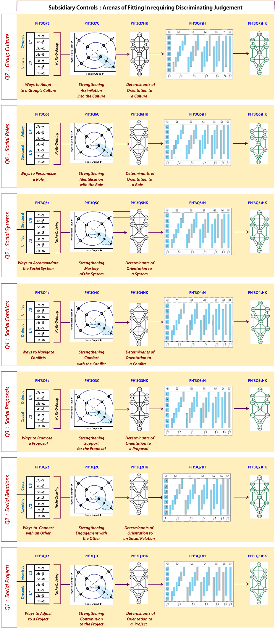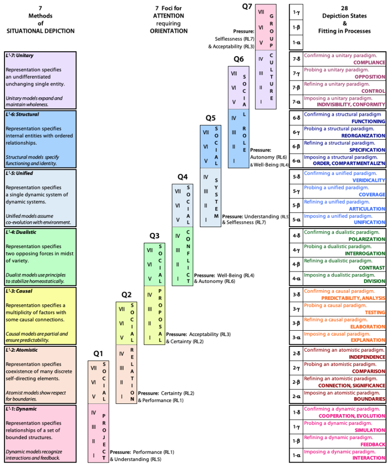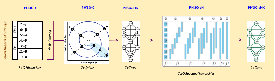 Each Arena is then developed to reveal a Typology (Ways), a Spiral (Stages), a Spiral-complex consisting of an initial Tree (Levels, Centres), a Structural Hierarchy (Groupings, Groups), and a final Tree (Levels, Centres).