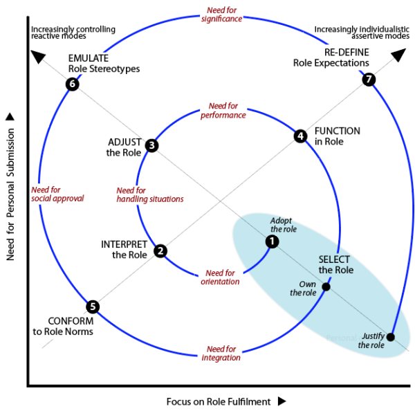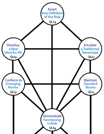 Level 7: Re-defining role expectations in the face of societal evolution is a matter for each individual but is dependent on that evolution. Rather than being ideal, this definition is practical. The social milieu has influence but does not have independent control here.