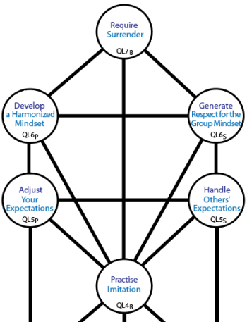 Level 6: In reconstructing your mindset, you have control over the mindset that you actively develop and this must harmonize with the group mentality. However, you have no control over the group mentality which you are attempting to emulate. The mentality would not persist if it was not useful. Sensitively attuning over time will allow you sympathize with its way of thinking and recognize its value.