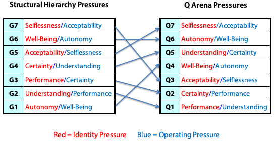 The primary pressure related to the identity (or structure) of the Q-arena. and a secondary pressure related to the operation of the Q-arena.