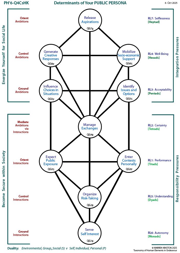In the diagram below, note that the lower pole activates pressures for responsibility, whether the upper pole activates pressures for integration. This aligns with the public persona being about effective participation in social life.