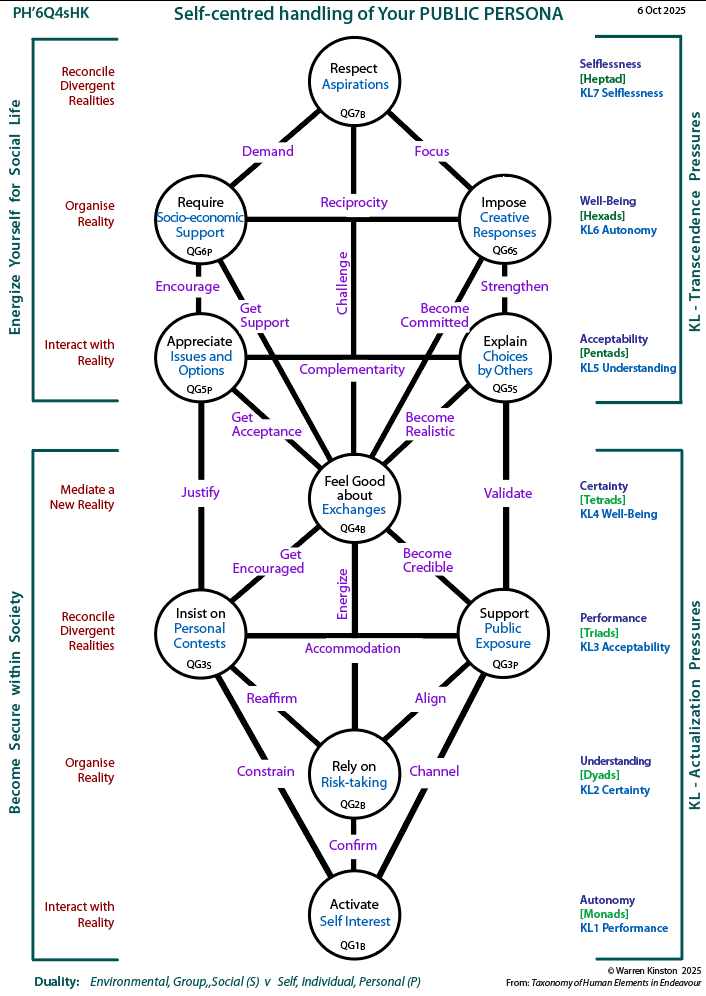 As a result, the lower pole is about responding to actualization pressures, while the upper pole generates transcendence pressures. This is shown in the diagram below which also includes the standard verbs and channel labels.