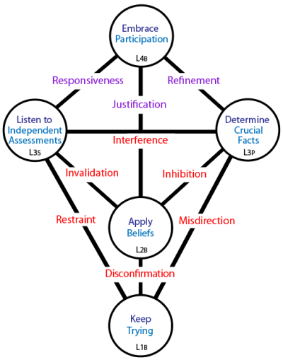 Participation does not directly affect trying or vice versa because any influence must be mediated by the realities which direct trying or by beliefs which confirm trying. Without those mediating centres there would be no external check () or internal check () on why trying-and-participation are occurring and even whether involvement makes any sense.