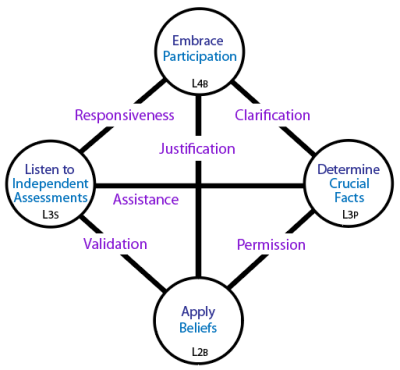 The independent assessment of relevant realities can similarly endorse or validate the application of beliefs to the situation. Beliefs, in turn, will be used to validate the appropriateness or even correctness of independent assessments.