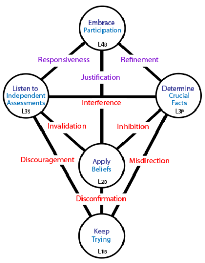 Participation does not directly affect trying or vice versa because any influence must be mediated by the realities which direct trying or by beliefs which confirm the trying. Without those mediating centres there would be no external check () or internal check () on why trying-and-participation are occurring and even whether it is sane.