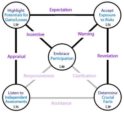 Accepting exposure to risks () will dominate over anticipated potentials (), because if the risks cannot be tolerated, willingness rapidly diminishes. So the Centre is dominant and placed on the right side of the Tree and a channel between these two is necessary.
