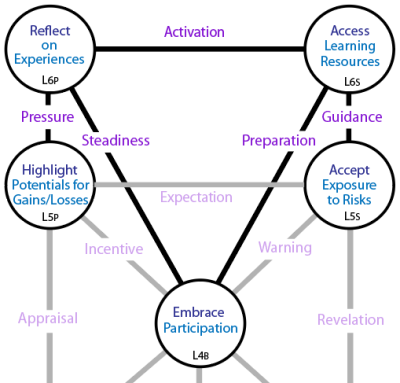 The embrace of participation acts as a stabilizer and focus for reflecting on experiences. Reflecting on experiences is helpful in moderating and steadying the extent of participation.